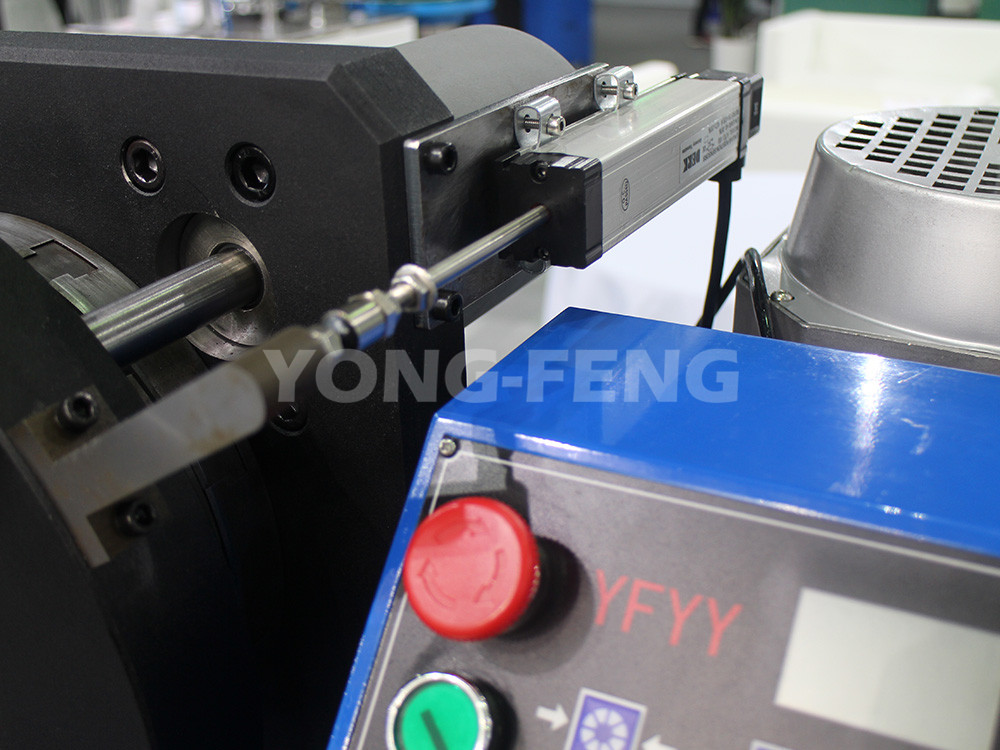 4. 把套好接頭的膠管置于壓管機頭內適當位置,使得一次扣壓全部長度。