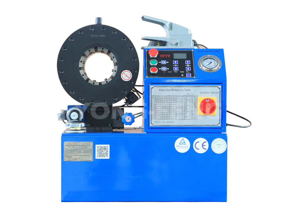 扣壓機(jī)英文名稱通常翻譯成:crimping machine 或者crimper。扣壓機(jī)是一種用于扣壓管件總成的 液壓設(shè)備,其將所配套的金屬接頭通過(guò)扣壓機(jī)的模具施加收縮力,將金屬接頭牢固的扣壓在所配套的工程機(jī)械用高壓油管或汽車上的剎車管、 機(jī)油管、空調(diào)管、動(dòng)力管上。